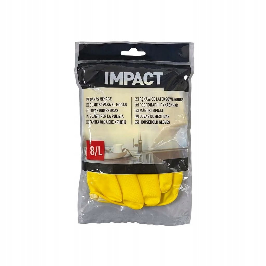 Lateksowe rękawice do czyszczenia IMPACT, rozmiar L, idealne do wszystkich codziennych prac domowych: zmywania naczyń, sprzątania itp. Wzmocniona odporność. Wielokrotnego użytku.