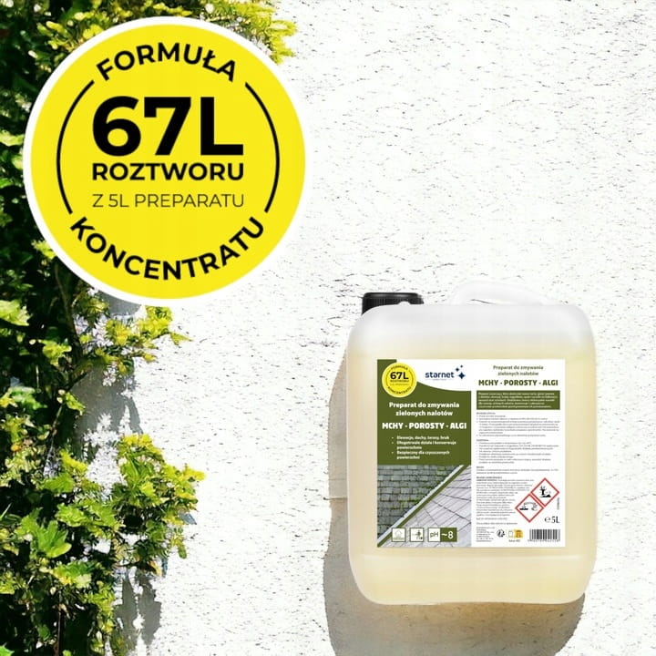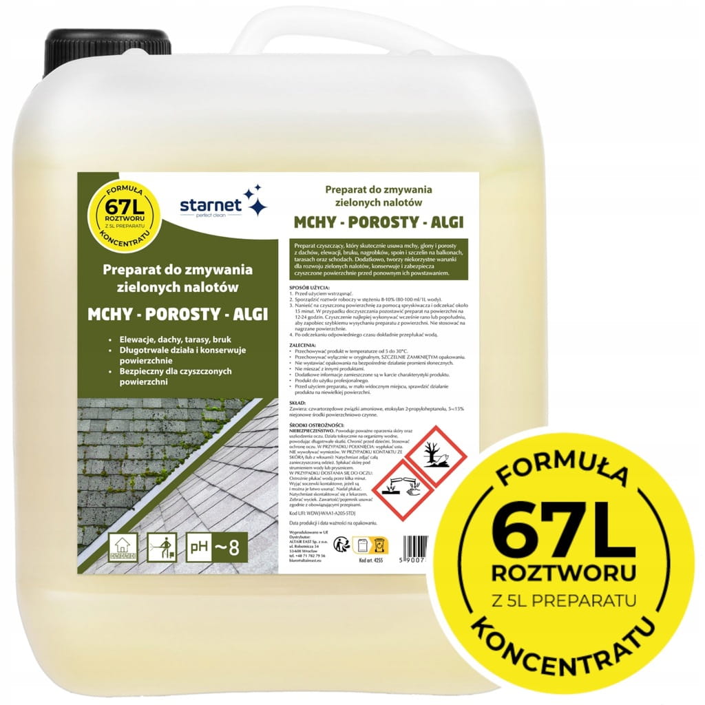 PŁYN DO MYCIA ELEWACJI KONCENTRAT 5L DO USUWANIA MCHU WYDAJNOŚĆ 67L