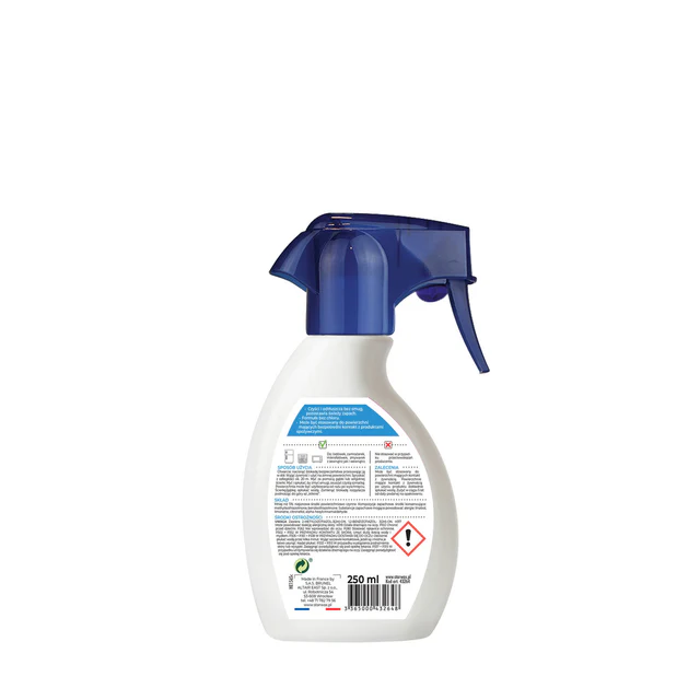 SPOSÓB UŻYCIA: Wyjąć żywność i użyć na zimnej powierzchni. Spryskać z odległości ok. 20cm. Myć za pomocą gąbki lub wilgotnej ścierki. Myć i spłukać, by zmyć smugi, osuszyć czystą szmatką. Powierzchnia może być użytkowana od razu po wyschnięciu.