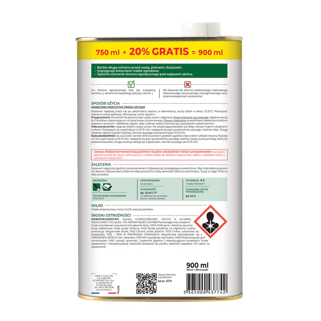 STARWAX OLEJ Z DŁUGOTRWAŁĄ OCHRONĄ 900ML 43774 TEK I DREWNO EGZOTYCZNE MEBLE OGRODOWE