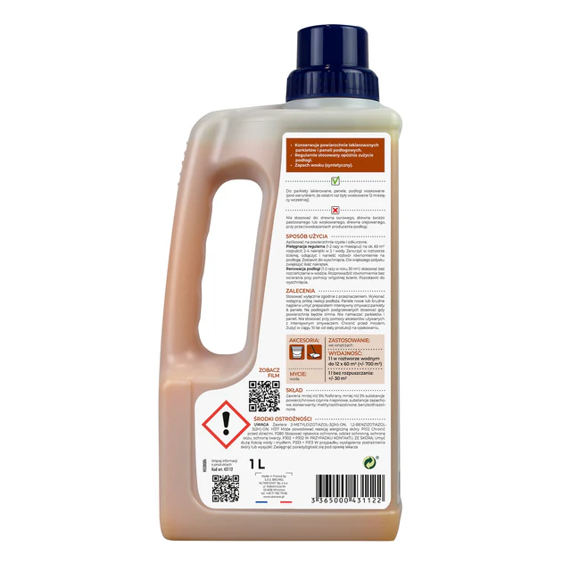 Pielęgnacja i nabłyszczanie Starwax, czyści i przywraca połysk Twoim podłogom w jednym kroku. Może być stosowany jako 3 etap pielęgnacji podłóg w celu dokładnego nabłyszczenia paneli, ale także zapewnienia im odpowiedniej ochrony, tak samo świetnie się sprawdzi w stosowaniu samodzielnie jako koncentrat do mycia w codziennej pielęgnacji. Nabłyszcza, maskuje drobne rysy na lakierowanych parkietach i panelach.
