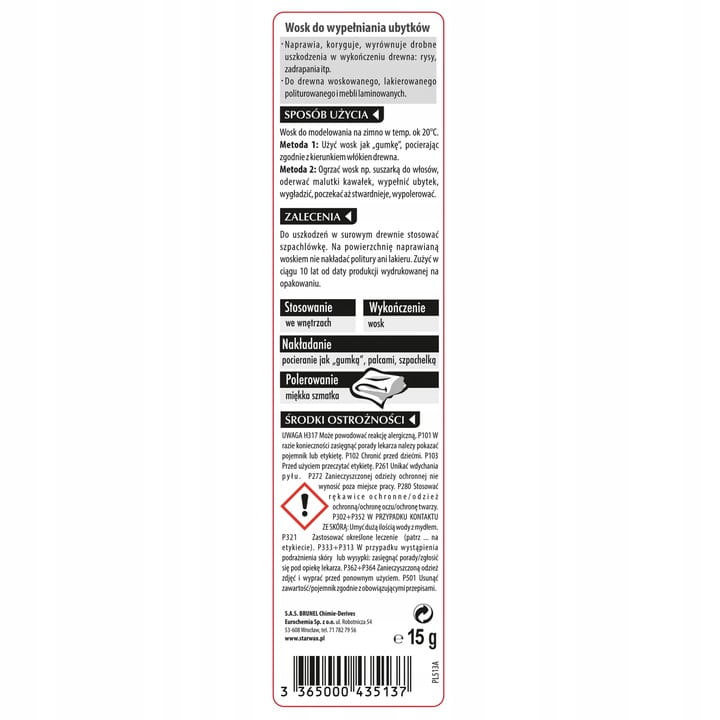 - Naprawia, koryguje, wyrównuje drobne uszkodzenia w wykończeniu drewna: rysy, zadrapania, inne drobne ubytki