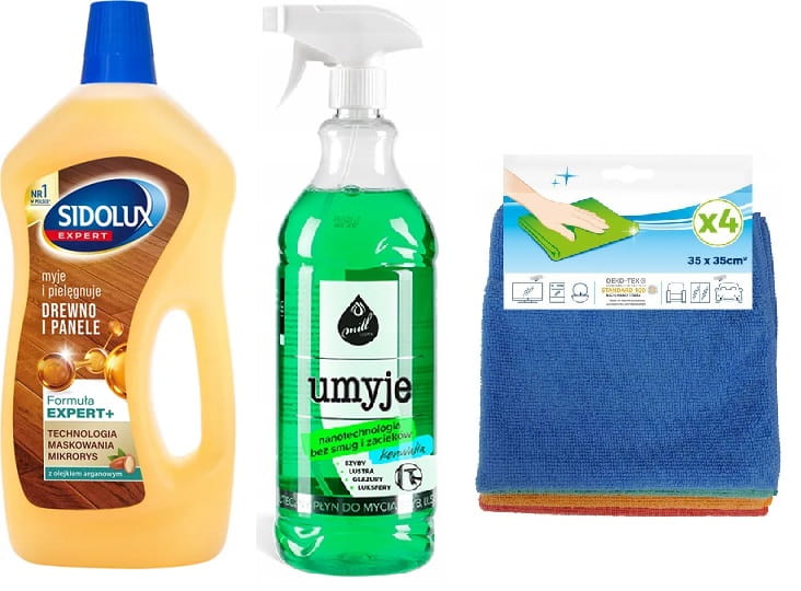 Zestaw do sprzątania salonu Płyn do podłógi+gładkich powierzchni+Ściereczki